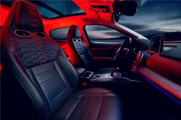此外,VV7 GT brabus | automotive内饰采用让人印象深刻的红黑撞色风格,带来强烈豪华视觉质感冲击,同时搭载WEY品牌与巴博斯共同打造人体工程学定制竞技赛车座椅,配备一体化头枕,座椅靠背还增加了"brabus | automotive"专属标识,在保证豪华质感与乘坐舒适度的同时,体现出其个性张扬的豪华超跑格调,力求给到车主们极致的驾乘感受。