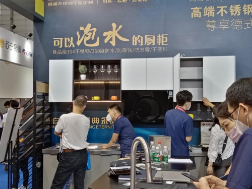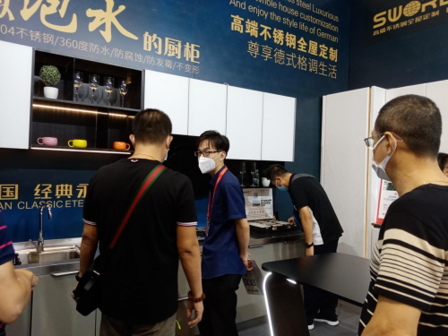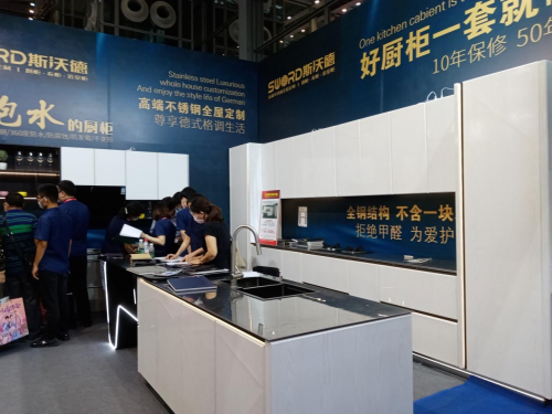 此次展会现场,斯沃德橱柜带来了创新研发的一系列不锈钢厨柜产品,彰显了致力于打造德式格调全屋定制家居的品牌理念,吸引了大批参展观众的目光,展位人潮不断。